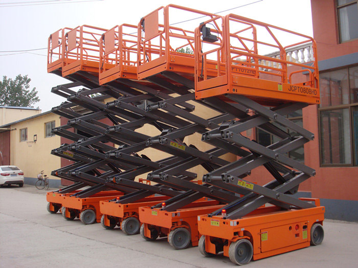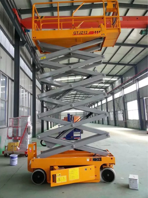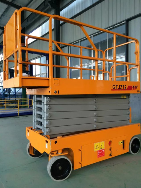 SJZ系列自行式升降機具有自行走功能,能夠在工作狀態下,不需外接電源,不需動力牽引,可自由行走、后退、轉彎。